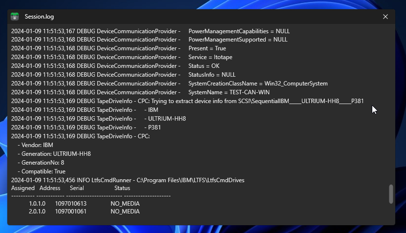 Besides Transfer Logs, both Canister and LTFS events are recorded in the Console Log. This console output is essential to tackle issues with tapes, drives, and drivers.